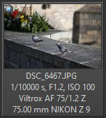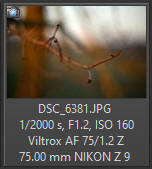 A není to objektiv jen pro majitele DX snímačů. I vlastníci Z7x, Z8 či Z9 mohou tento vysoce světelný objektiv využít, pokud jim stačí v DX režimu 5392 x 3592 bodů (= cca 19 mpx). Majitelé fotoaparátů Z5 a Z6 budou mít velikost fotografie 3984 x 2656 bodů (= cca 10.5 mpx), což na běžné velikosti fotografií stačí - a pokud ne, jsou zde programy, které sice žádné další detaily nevymyslí, ale dokážou obraz dnes již velmi kvalitně přepočítat na vyšší rozlišení, pokud by to bylo třeba. Pokud budete fotografovat venku při pěkném počasí na clonové číslo 1.2, může se stát, že už nebudete moci snížit ISO na takovou úroveň, abyste mohli dát dostatečně krátkých čas. V tom případě už pomůže pouze slabší šedý filtr - ale hodně kvalitní, aby objektivu v ostrosti moc neublížil (o natáčení videa ani nemluvě).