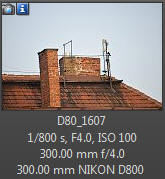 Pro další testy jsem zvolil telekonvertor Nikon TC-20EIII (cena cca 13.000,- Kč), tedy nejnovější, který je od Nikonu k dispozici. Tento telekonvertor prodlužuje ohniskovou vzdálenost 2x a snižuje světelnost o 2 clony. Vybral jsem jej z toho důvodu, že zrcadlovka D800 má dostatek bodů pro to, abych mohl zcela pominout telekonvertor s prodloužením 1,4. Možná by bylo lepší řešení použít telekonvertor 1,7x, ale ten k dispozici nemám a navíc výsledky mezi 1,7x a 2x nebývají zásadně odlišné. Telekonvertor na D800 Při použití TC-20EIII se prodlouží ohnisková vzdálenost celé soustavy na 600 mm při nejnižší cloně 8. Clona 8 je také většinou limitní nejvyšší clonou pro schopnost fotoaparátu automaticky ostřit. Samozřejmě je třeba upravit také časy, kterými budeme fotografovat, zvláště, pokud se fotoaparát nenachází na stativu. Zde malá poznámka - stativ pro ohnisko 600 mm musí být hoden svého jména - zde již stativová objímka skutečně chybí - upevnění celé soustavy přes stativový závit fotoaparátu začíná být nestabilní. Ostatní se svůj stativ můžete vyzkoušet sami - vypněte stabilizaci na objektivu, spusťte režim live-view a trochu klepněte do fotoaparátu - pokud není stativ zcela stabilní, uvidíte na displeji krásně jemné chvění obrazu. Následující snímky jsou pořízeny ze stativu s vypnutou stabilizací dálkovou spouští v režimu live-view: Takže abyste se v tom neztratili: cílem bylo zjistit, zda je možné docílit stejné kvality snímku, pokud bude snímek pořízen bez konvertoru a následně z něj bude proveden výřez odpovídající použití telekonvertoru. Výřezy detailu okapu odpovídají tiskové velikosti 120 x 160 cm. Je jasně patrné, že při použití telekonvertoru u D800 má snímek o něco více detailů a samozřejmě také jemnější "zrno". Takže tuto kapitolu bychom mohli zdánlivě uzavřít velmi jednoduše - při použití konvertoru TC-20EIII jsou výsledky v ostrosti na D800 lepší než dělat výřez ze snímku bez telekonvertoru. Je to dobrá zpráva, ale obecně vzato to tak jednoduché není - fotit krásně kontrastní budovu v záři zapadajícího slunce je trochu něco jiného, než fotografovat třeba pohybující se objekty za horších světelných podmínek. Rychlost automatického ostření (zvláště v režimu AF-C) je výrazně při použití telekonvertoru snížena, stejně tak pravděpodobnost, že se vám vůbec podaří zaostřit. V tomto ohledu se zdá být dobrým řešením (pokud máte FF snímač), pořízení D7100 s crop faktorem 1,5, který Vám vykreslí úhel odpovídající 450 mm a to při zachování plné světelnosti objektivu a jeho schopnosti rychlého a jistého ostření.