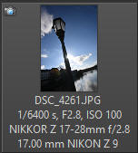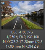 Těžko MTF křivky s něčím srovnávat. Naposled jsem měl nejbližší rozsah těchto ohniskových vzdáleností v ruce v LP 2007 při testování objektivu Tamron SP AF 17-35 F/2,8-4 na fotoaparátu Nikon D2x - kde jsou ty časy. MTF křivky nejsou moc přesvědčivé, zvláště v okrajových částech obrazu a ze všech tří výše uvedených nejhorší - když vezmeme v úvahu jeho podstatně zkrácený rozsah ohnisek, je to k zamyšlení - ale uvidíme na reálných snímcích. Nastavení fotoaparátu Nikon Z9 pro všechny zde publikované snímky, není-li uvedeno jinak: Fotoaparát Nikon Z9, zpracování